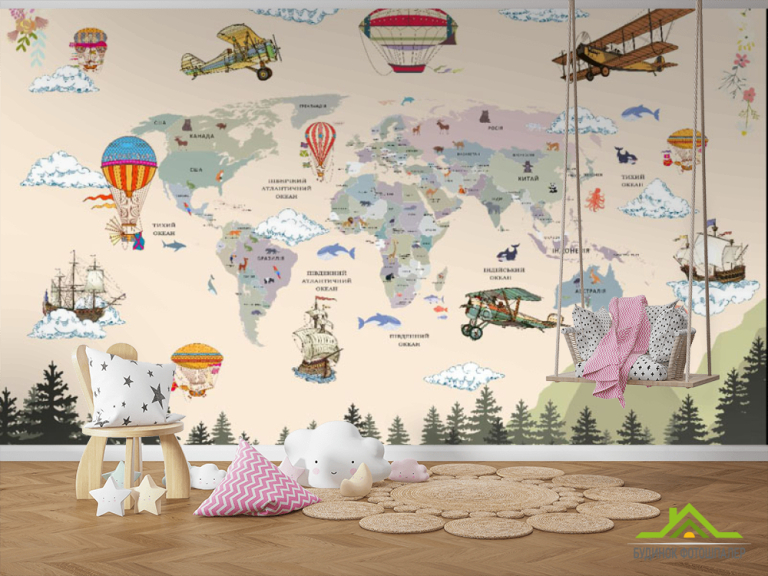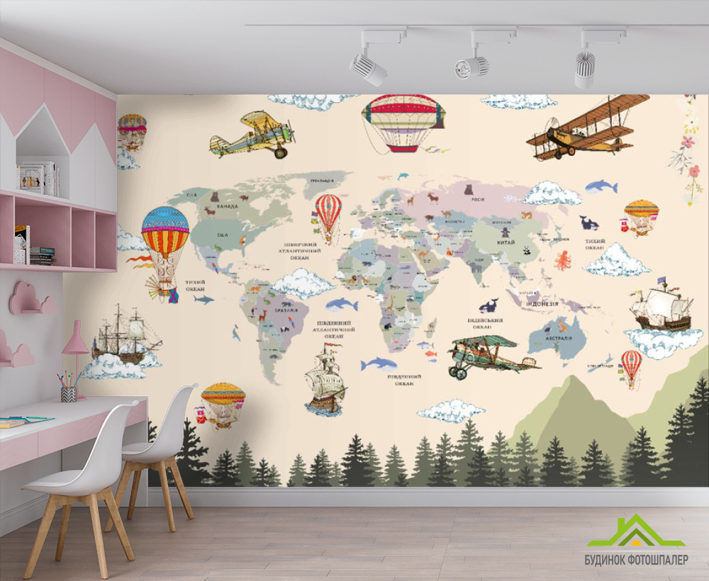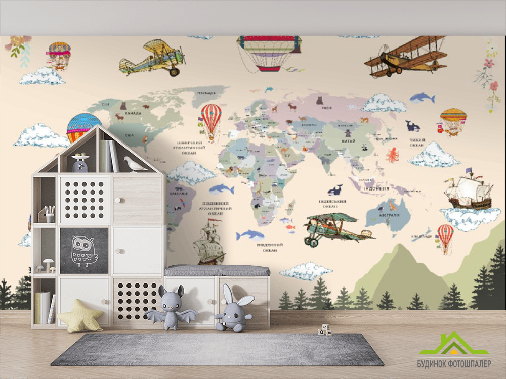 Фотошпалери Дитяча карта з лісом Фотошпалери Дитяча карта з лісом