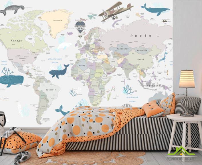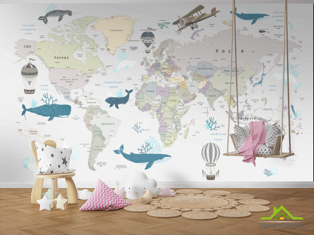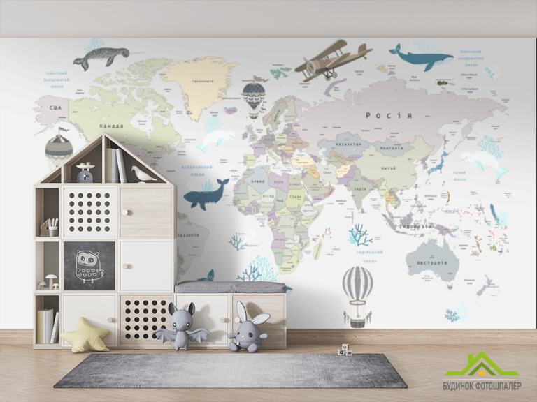 Фотошпалери Карта з тваринами українською Фотошпалери Карта з тваринами українською
