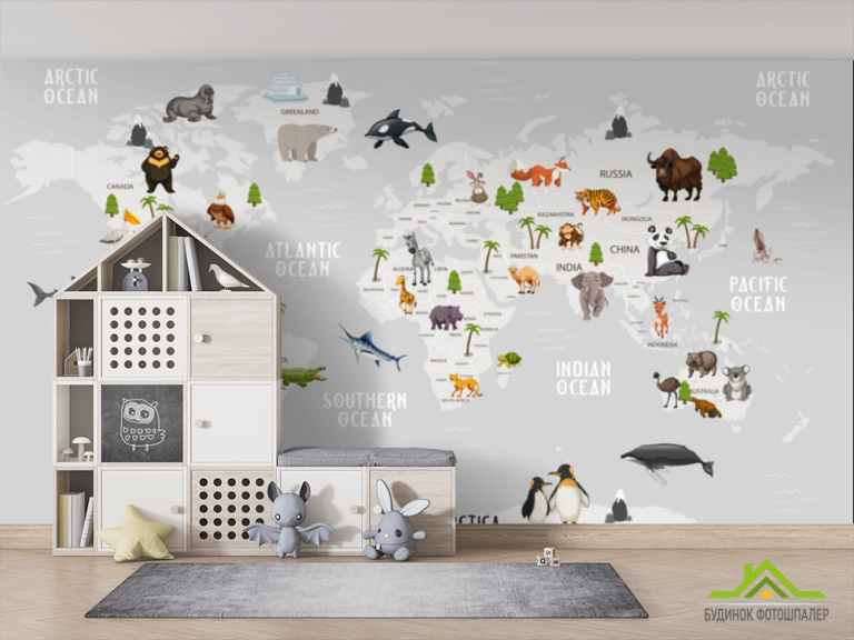 Фотошпалери сіра дитяча карта Фотошпалери сіра дитяча карта