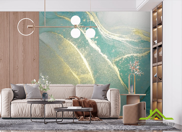 Фотошпалери Бірюзовий флюїд з золотом Фотошпалери Бірюзовий флюїд з золотом
