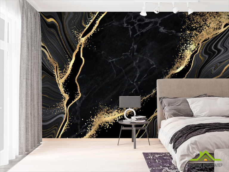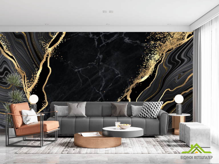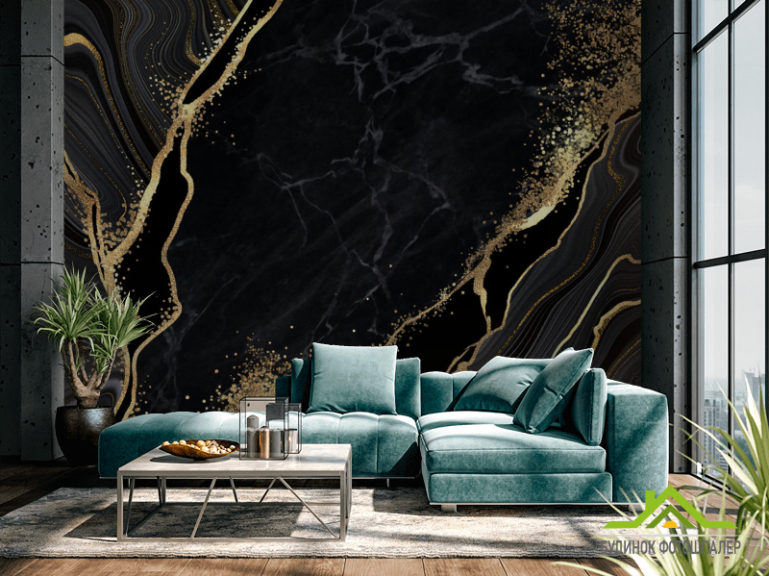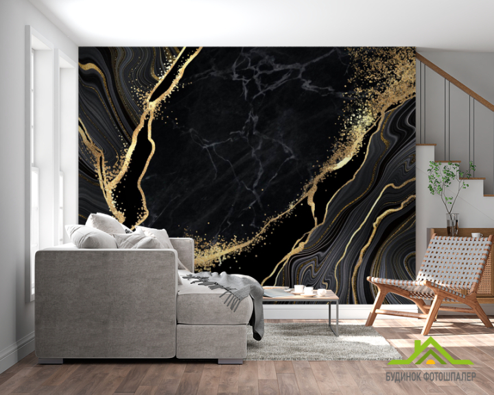 Фотошпалери чорний мармур з золотом Фотошпалери чорний мармур з золотом