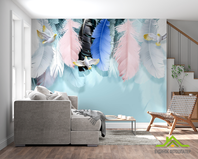 Фотошпалери різнокольорові пір'я Фотошпалери різнокольорові пір'я