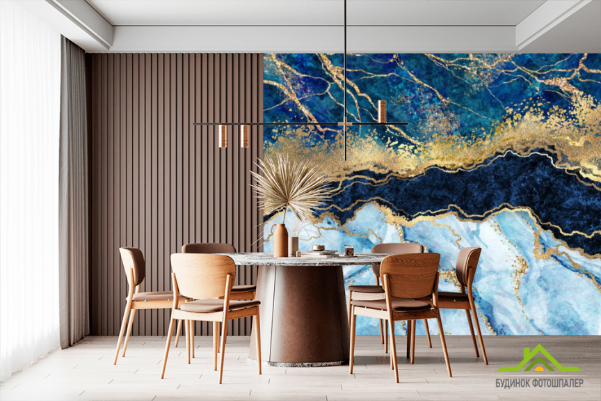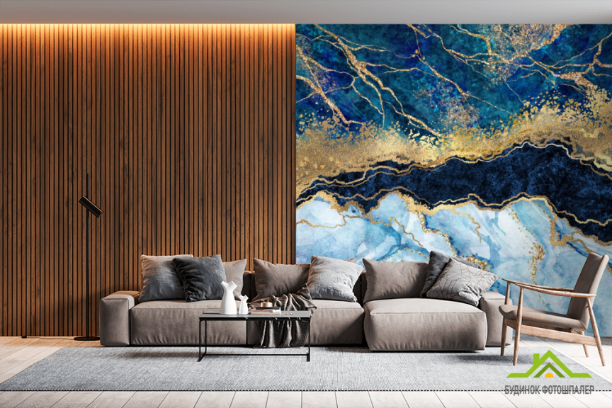 Фотошпалери Синій Fluid art з золотом Фотошпалери Синій Fluid art з золотом