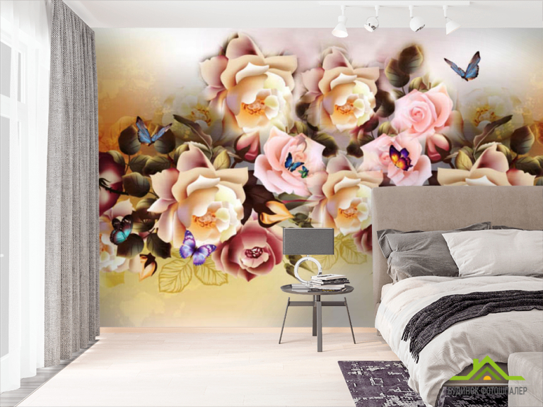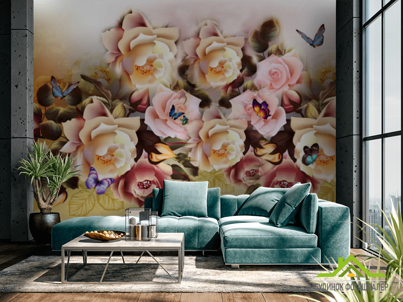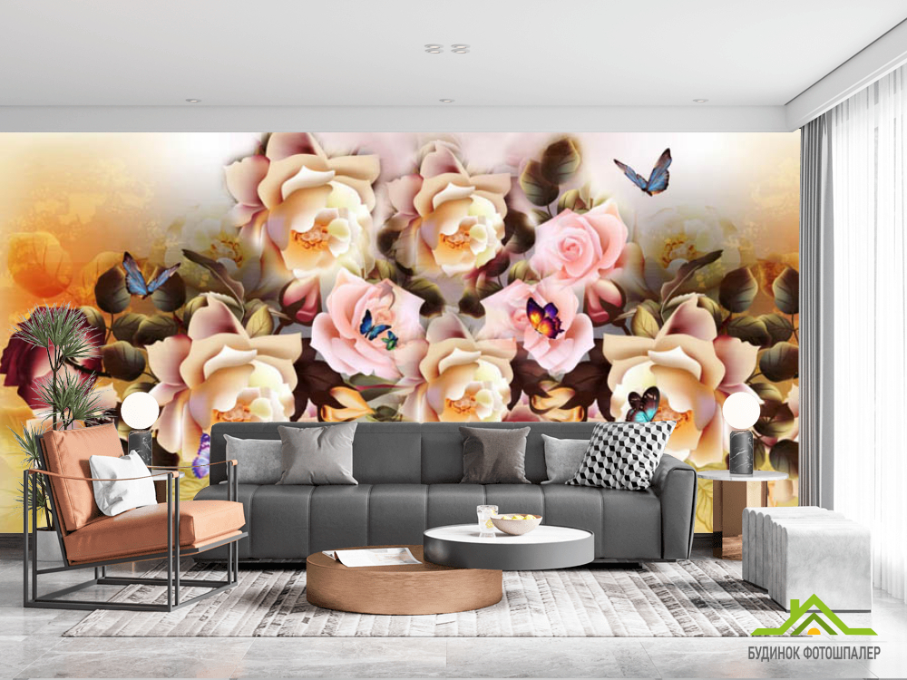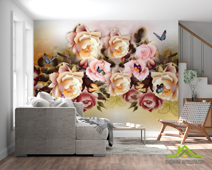 Фотошпалери мікс квітів з метеликами