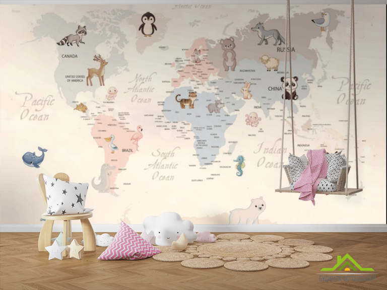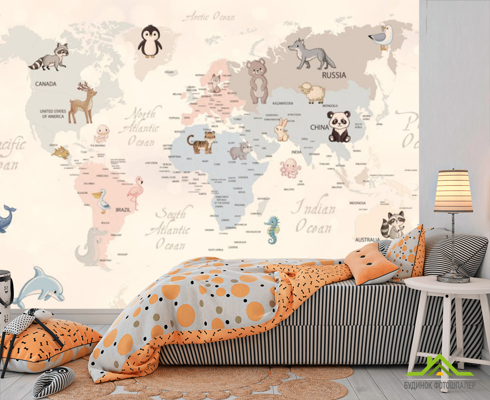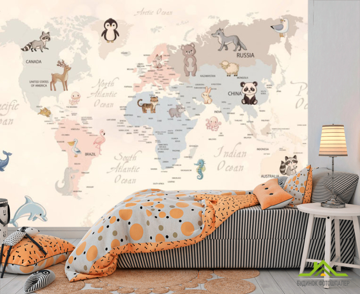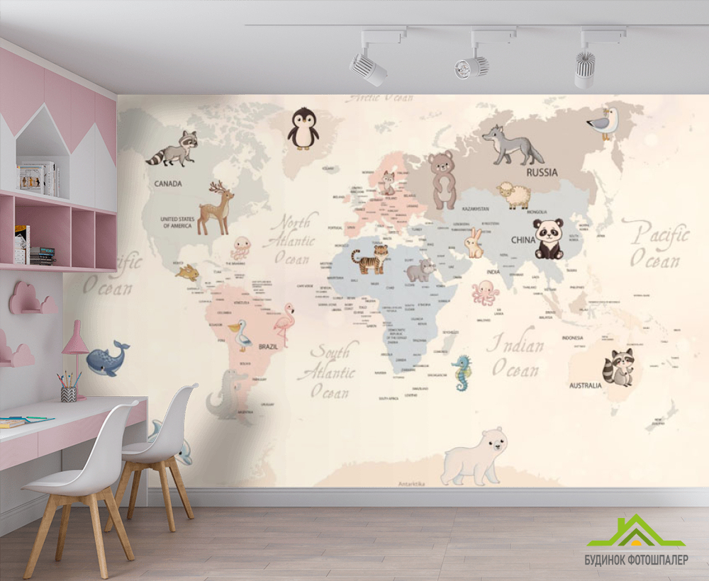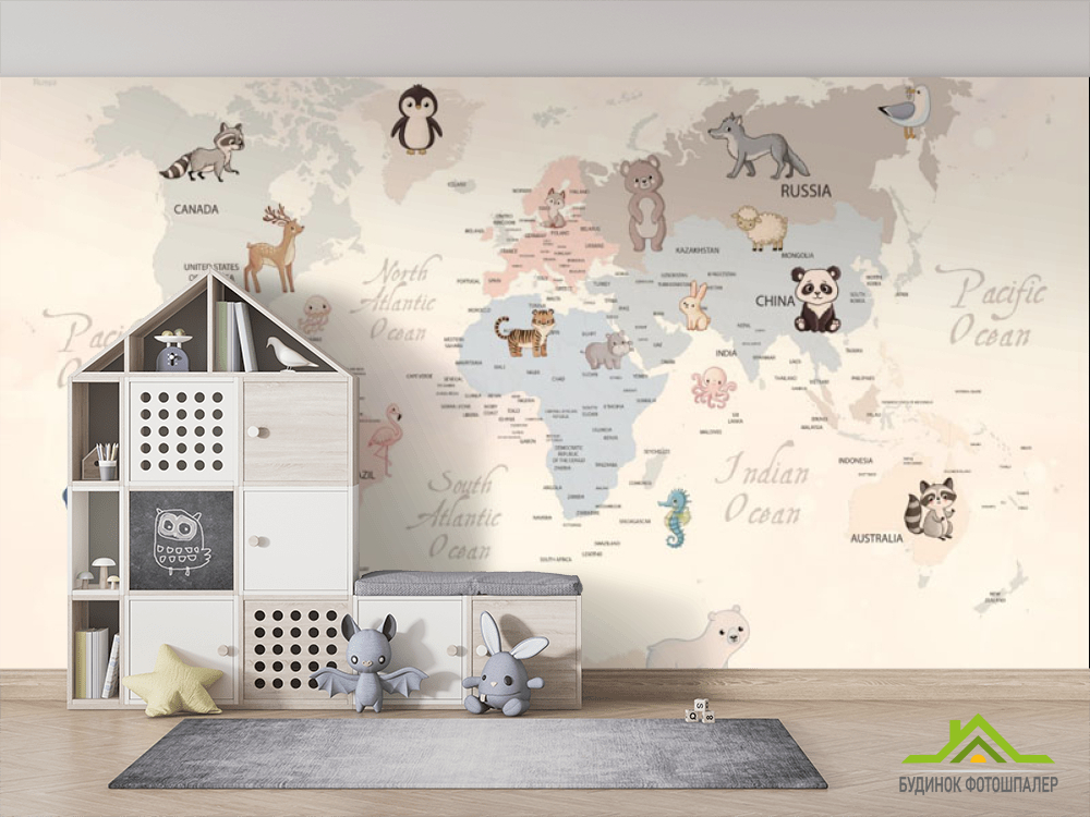 Фотошпалери Дитяча карта з тваринами Фотошпалери Дитяча карта з тваринами