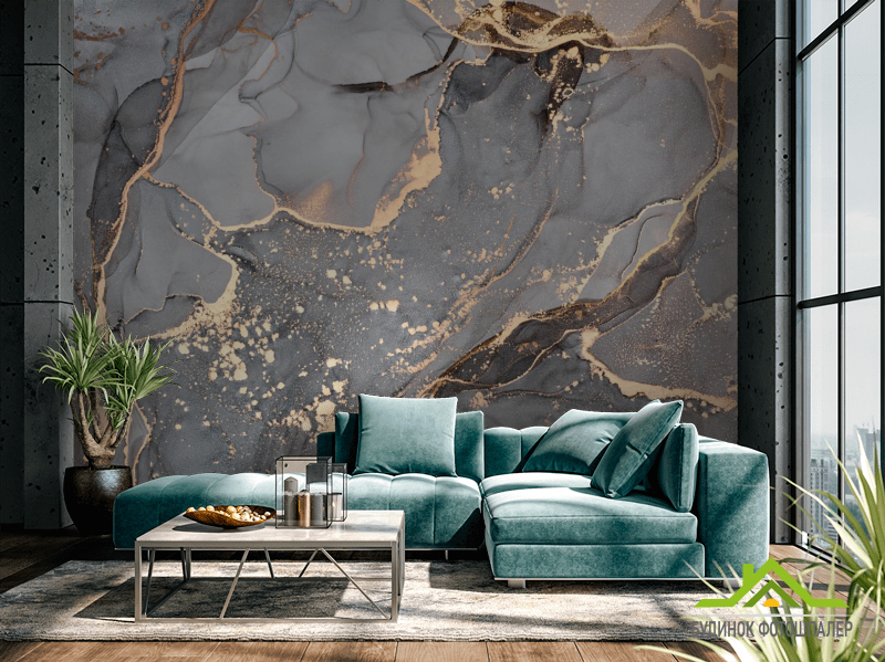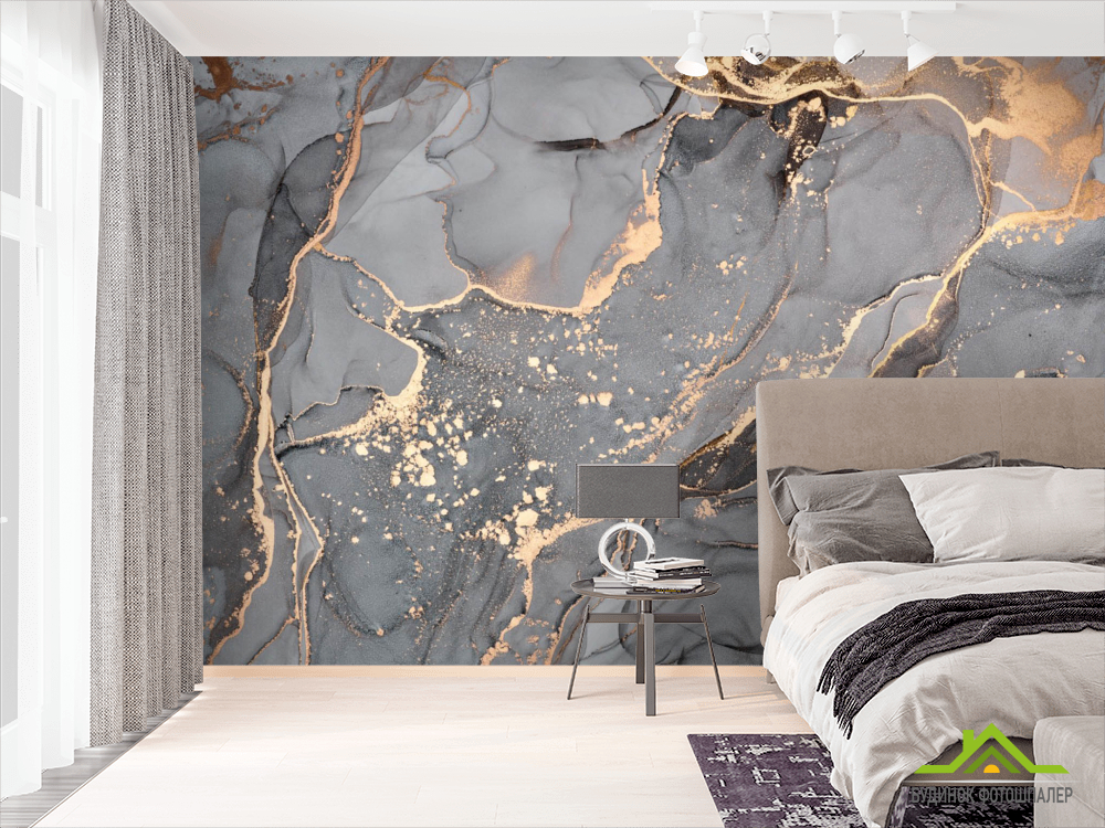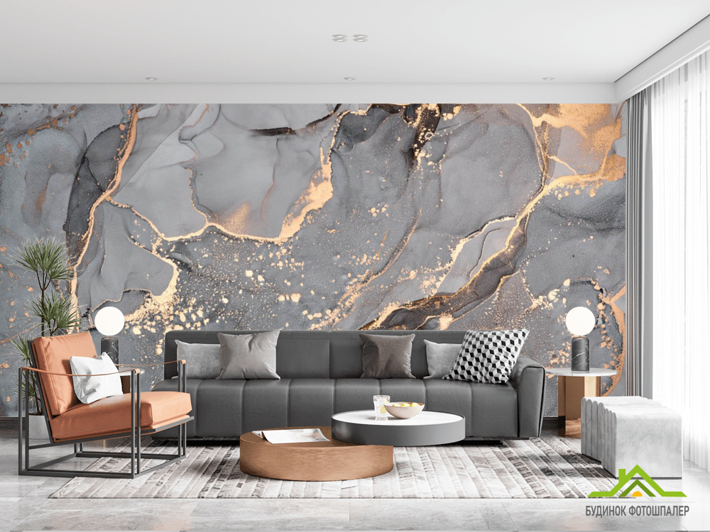 Фотошпалери Сірий Fluid art з золотом Фотошпалери Сірий Fluid art з золотом