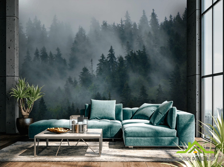 Фотошпалери ліс в тумані Фотошпалери ліс в тумані