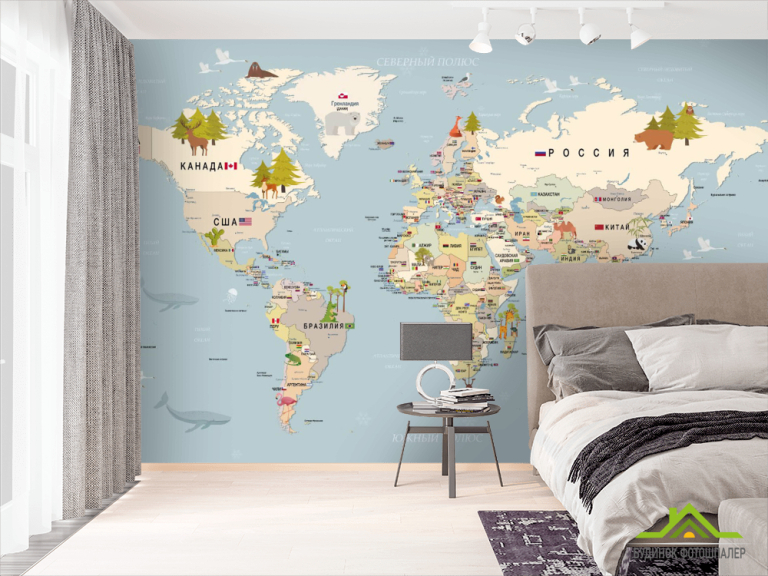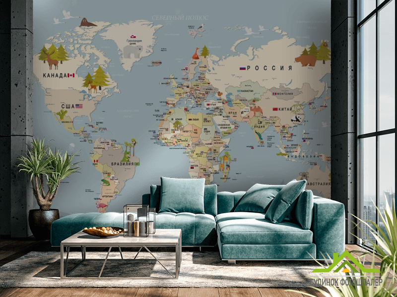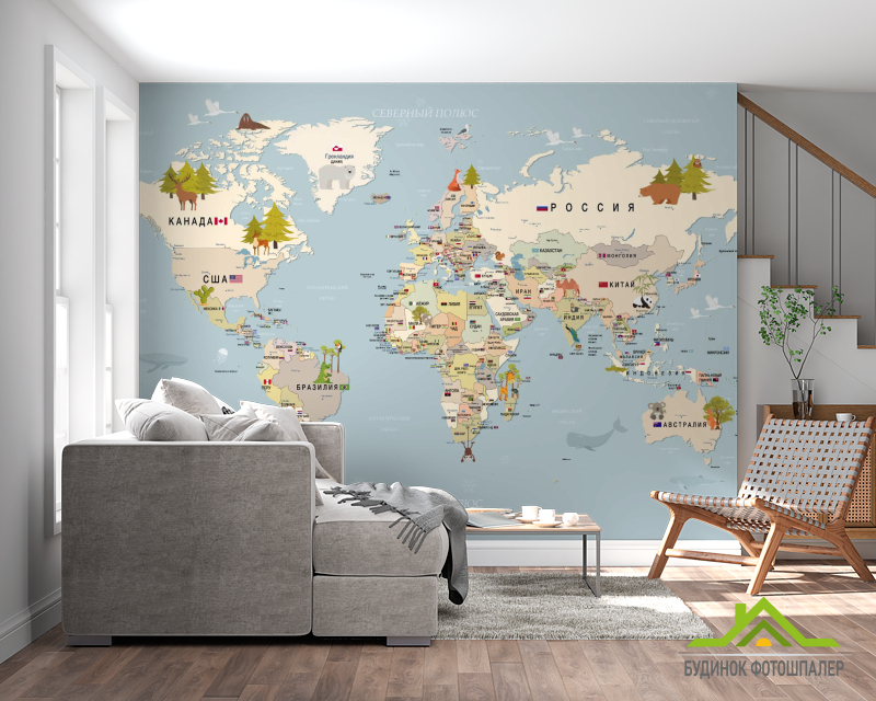 Фотошпалери Карта світу російською Фотошпалери Карта світу російською