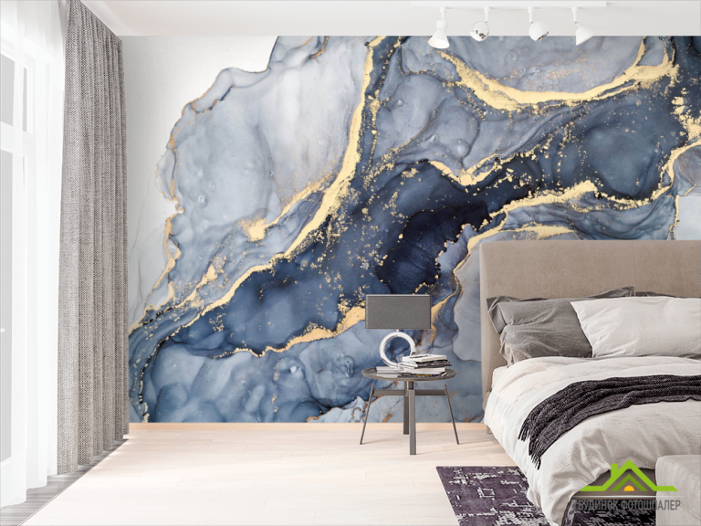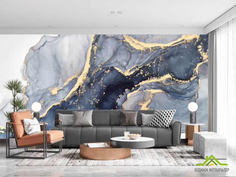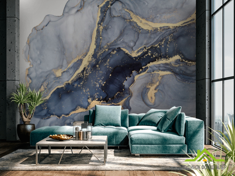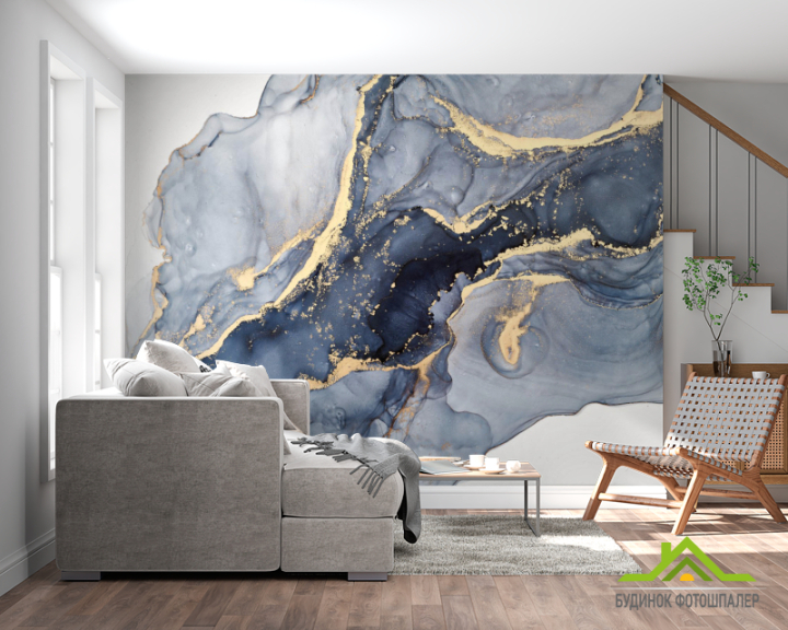 Фотошпалери Синій Fluid art з золотом Фотошпалери Синій Fluid art з золотом