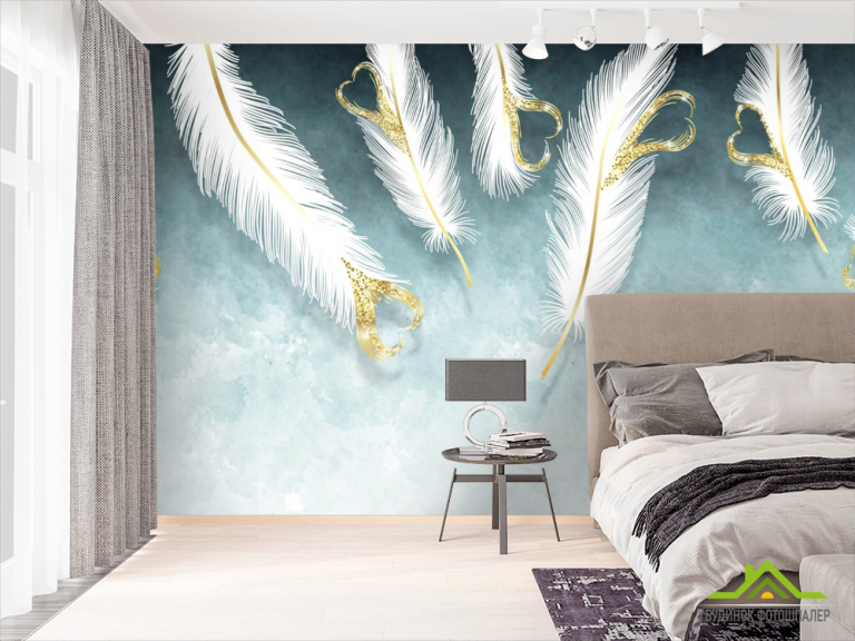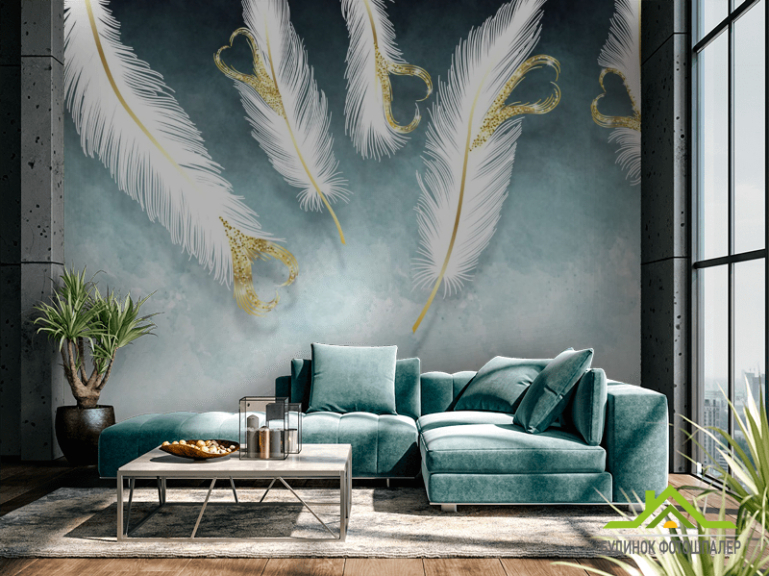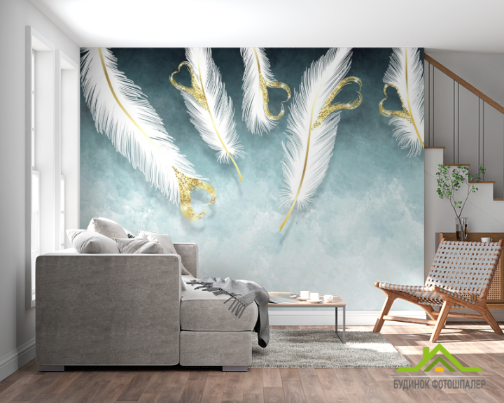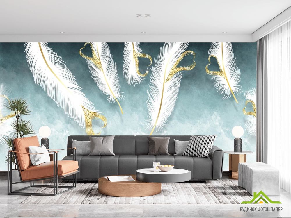 Фотошпалери біле пір'я і золото Фотошпалери біле пір'я і золото