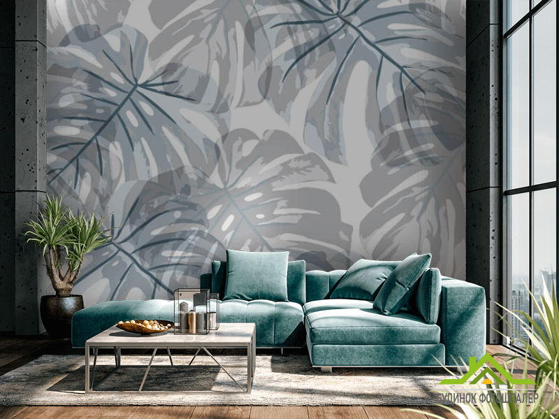 Фотошпалери патерн з листя монстери Фотошпалери патерн з листя монстери