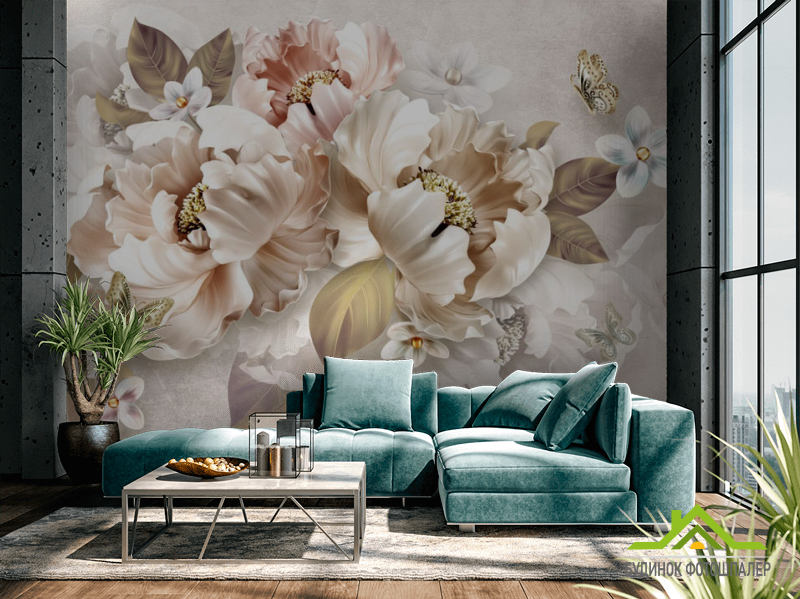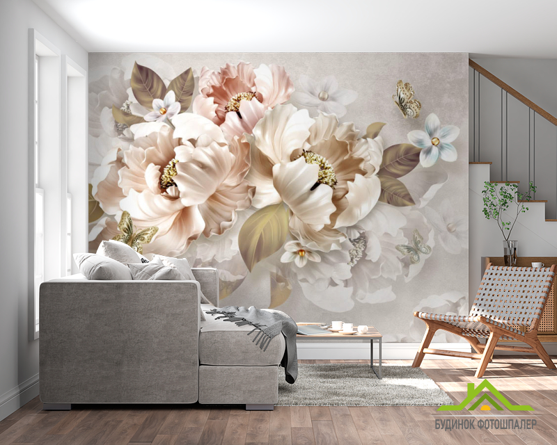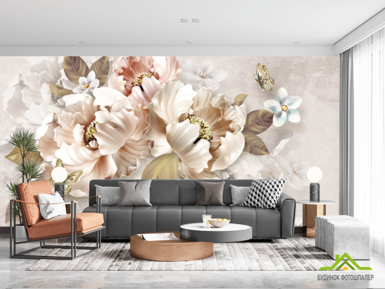 Фотошпалери золоті 3Д квіти Фотошпалери золоті 3Д квіти