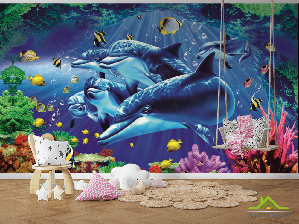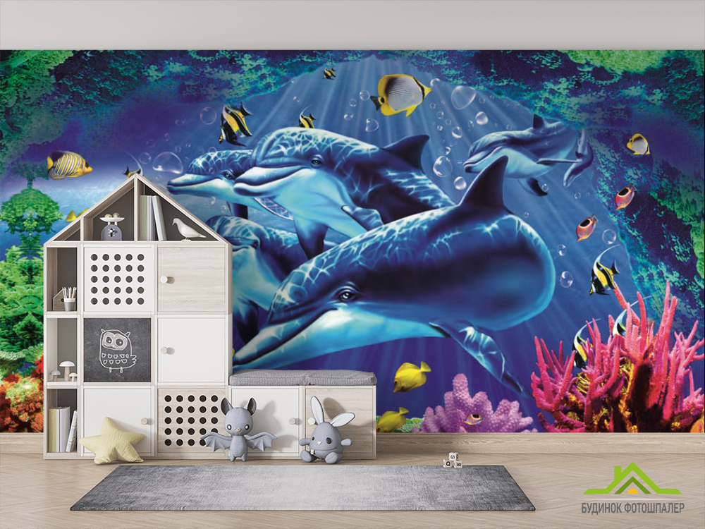 Фотошпалери 3Д Дельфіни Фотошпалери 3Д Дельфіни