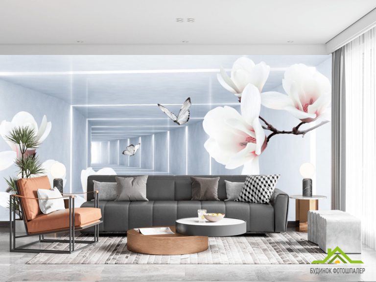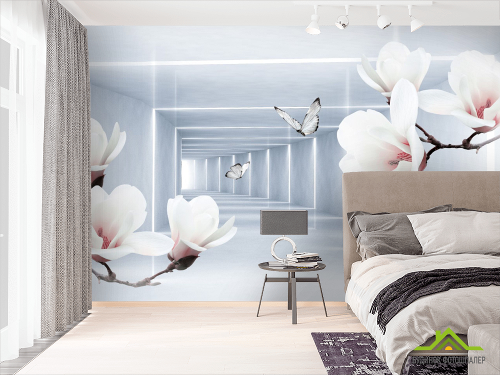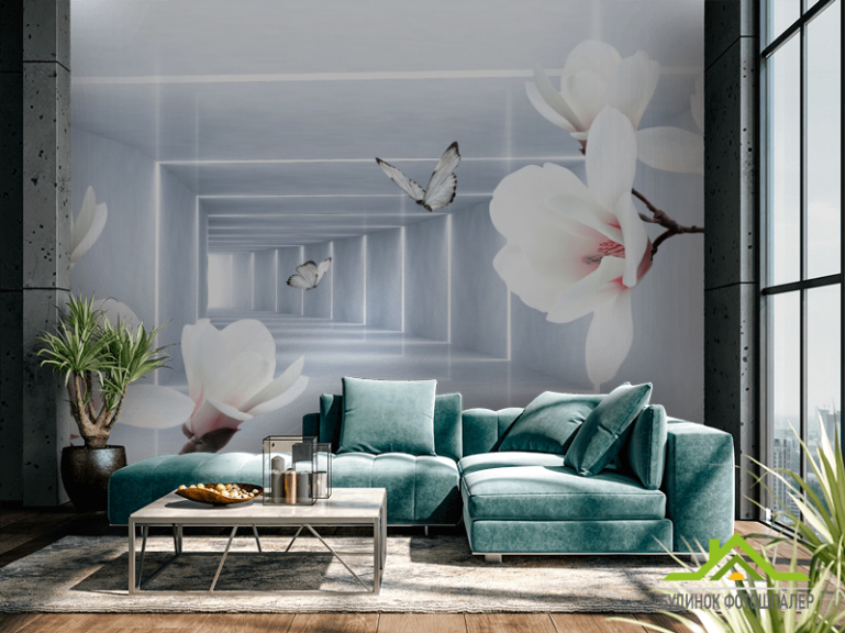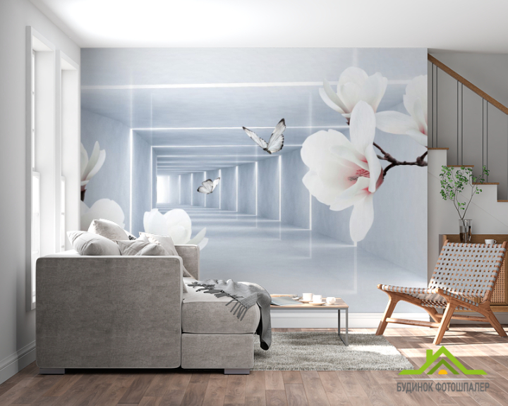 Фотошпалери квіти і 3Д тунель