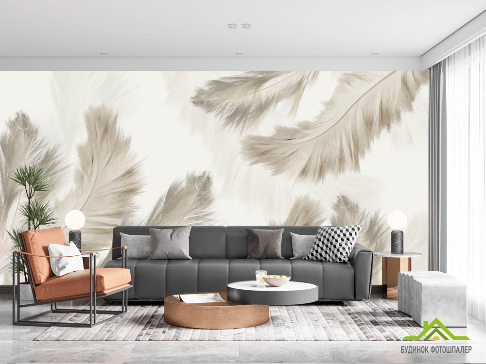 Фотошпалери бежеві пір'я Фотошпалери бежеві пір'я