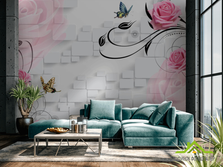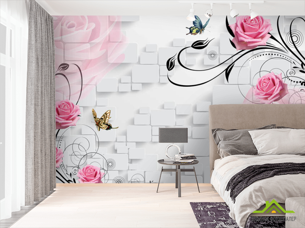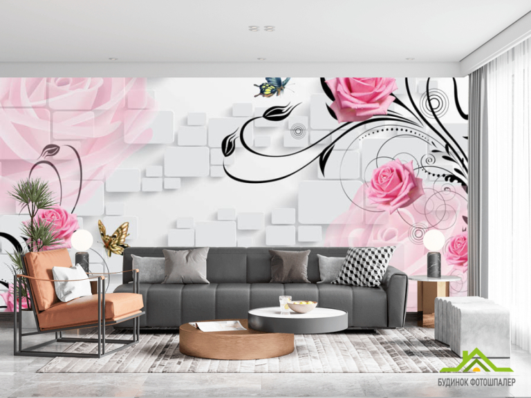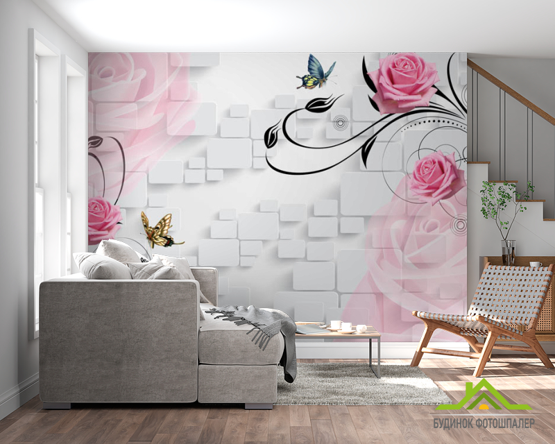 Фотошпалери троянди на тлі стіни Фотошпалери троянди на тлі стіни