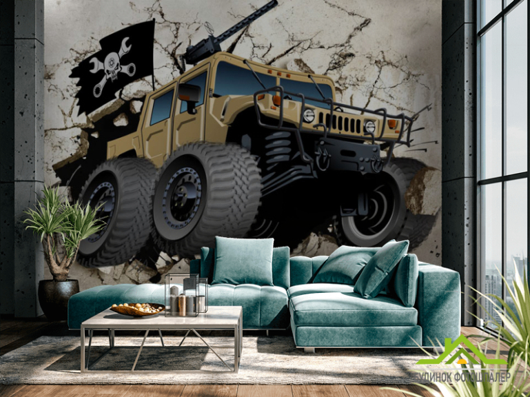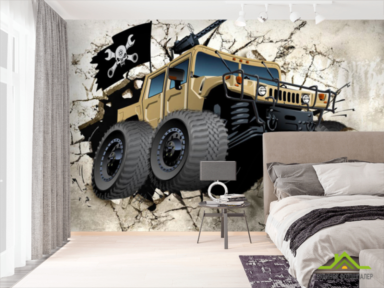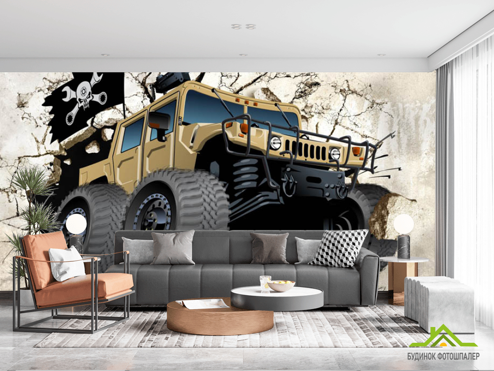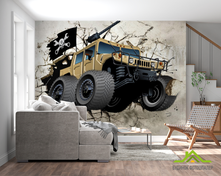 Фотошпалери 3Д машина і стіна Фотошпалери 3Д машина і стіна