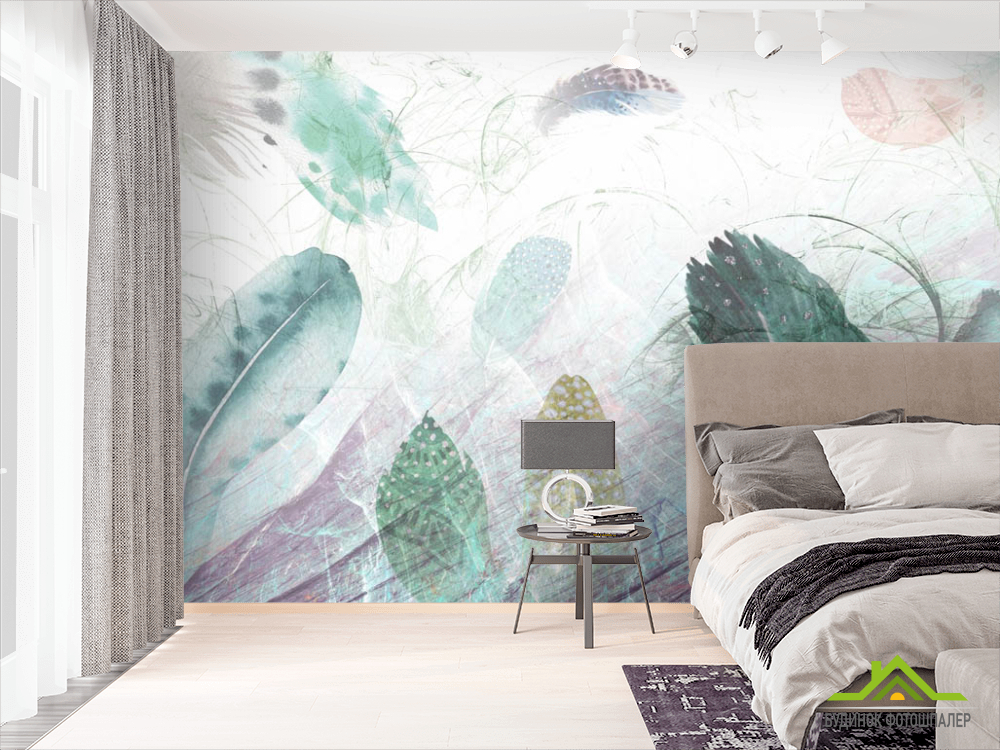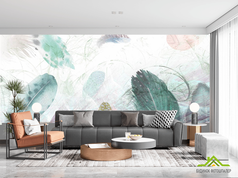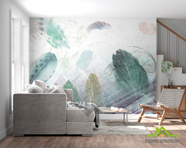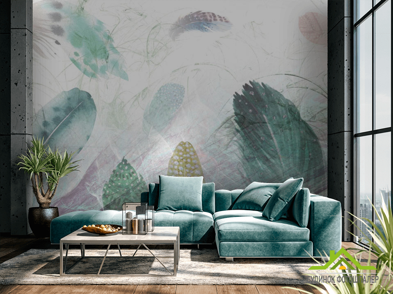 Фотошпалери різнокольорові пір'я на бетоні Фотошпалери різнокольорові пір'я на бетоні
