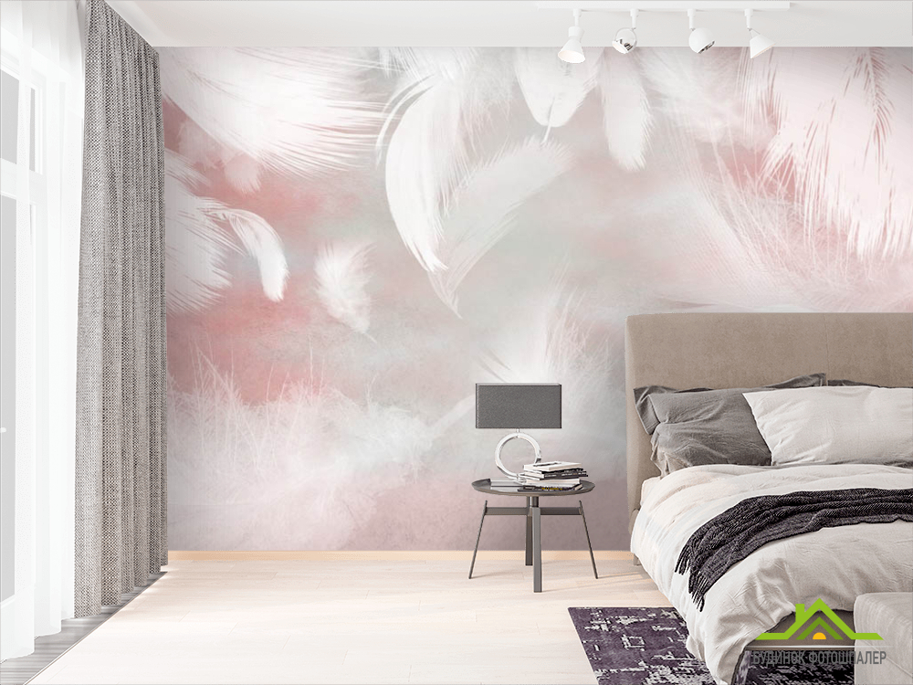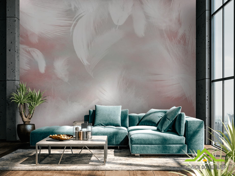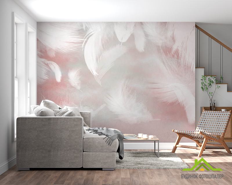 Фотошпалери білі пір'я на рожевому тлі Фотошпалери білі пір'я на рожевому тлі