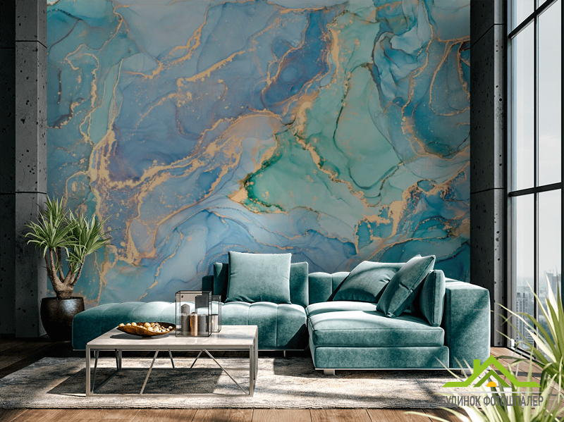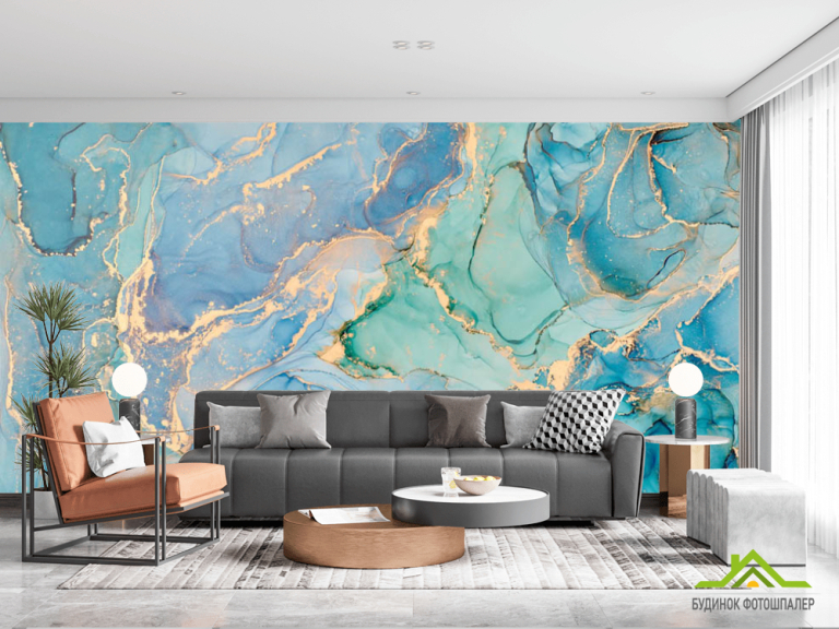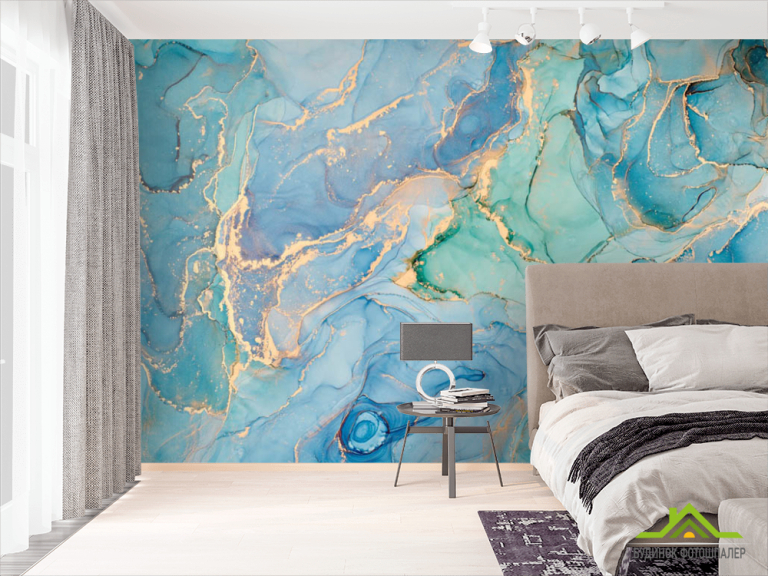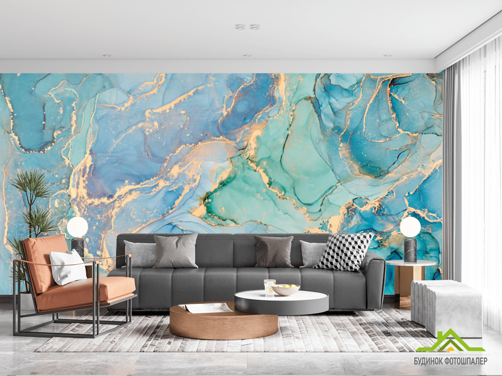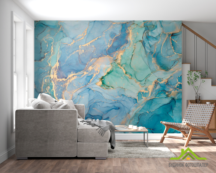 Фотошпалери яскравий блакитний Fluid art