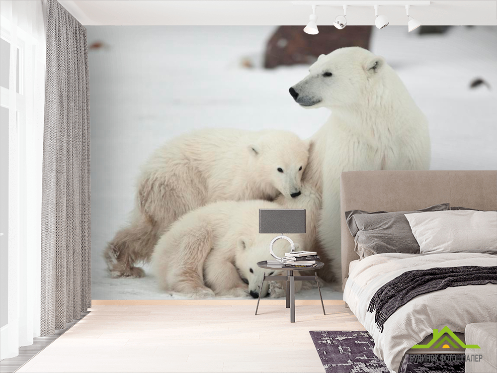 Фотошпалери Сім'я білих ведмедів Фотошпалери Сім'я білих ведмедів
