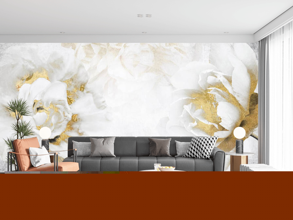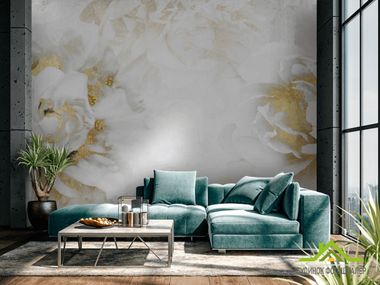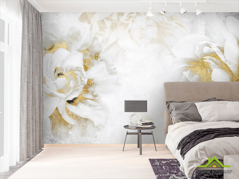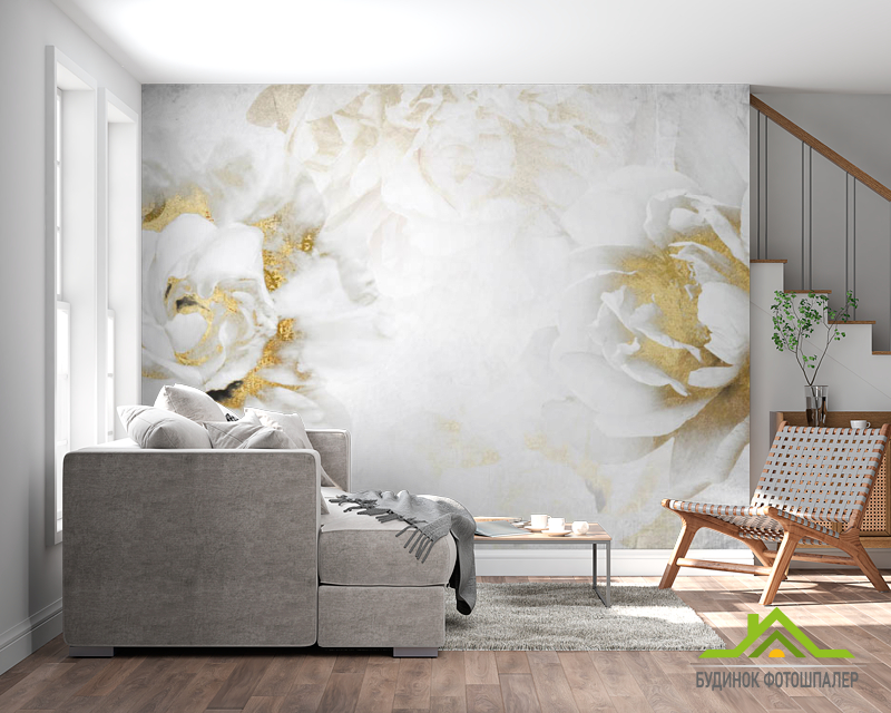 Фотошпалери білі квіти з золотом Фотошпалери білі квіти з золотом