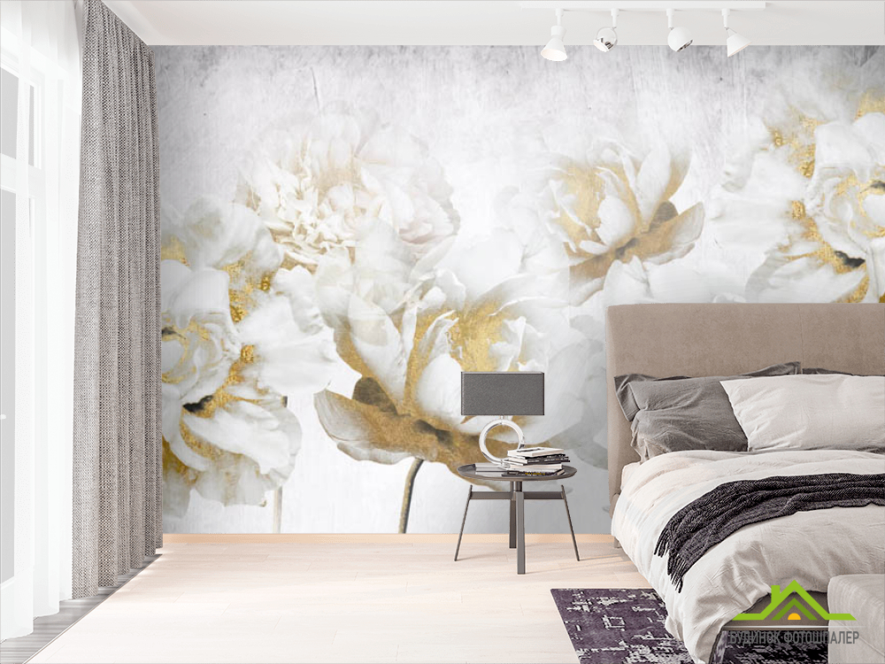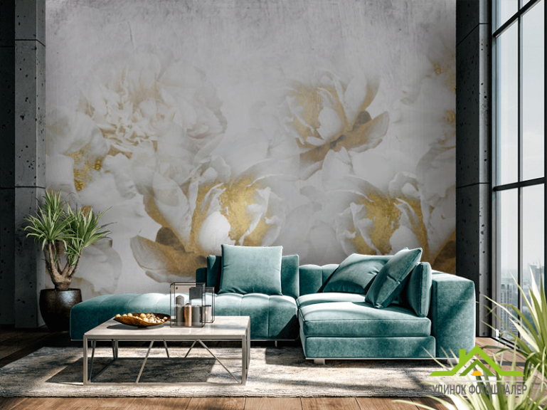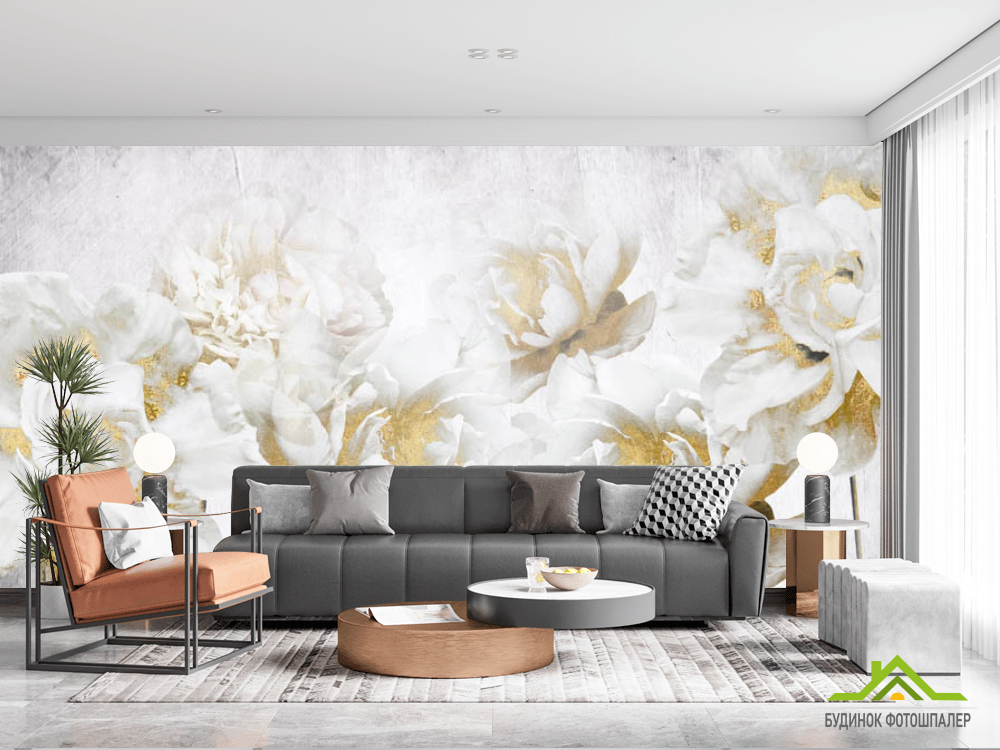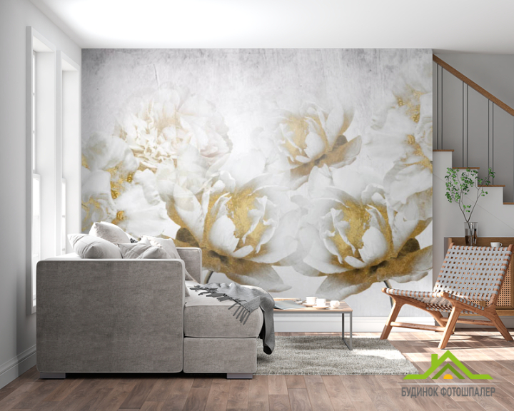 Фотошпалери білі квіти з золотом Фотошпалери білі квіти з золотом