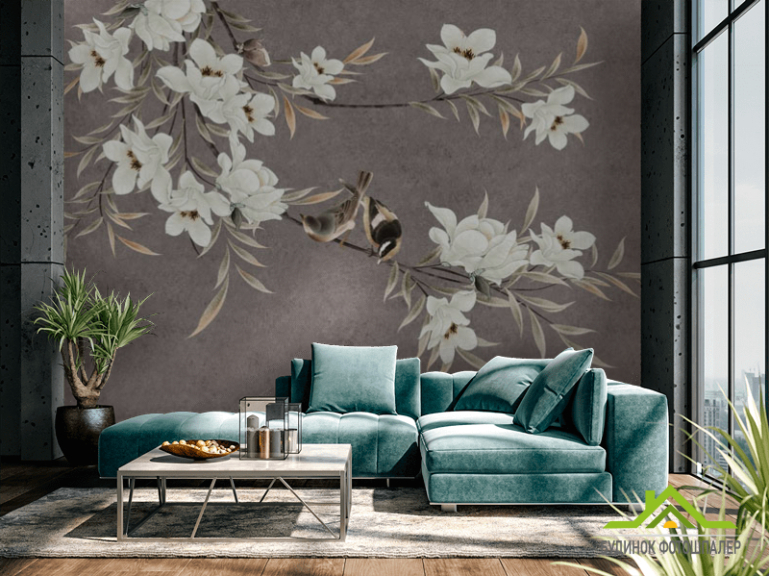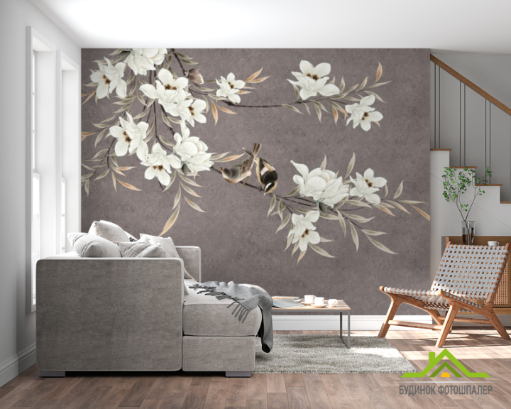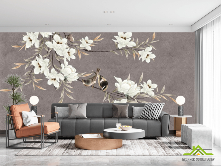 Фотошпалери гілки магнолії з квітами