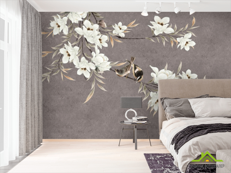 Фотошпалери гілки магнолії з квітами Фотошпалери гілки магнолії з квітами