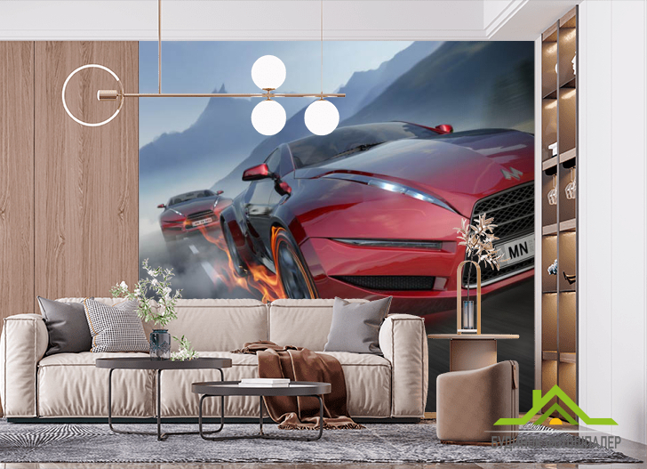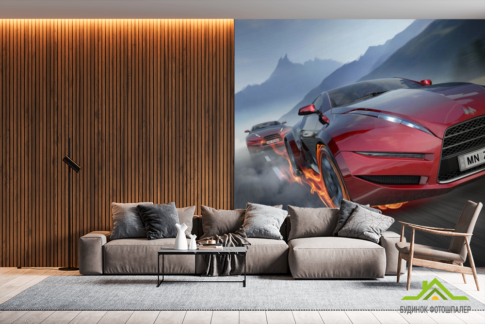 Фотошпалери Червона машина на трасі Фотошпалери Червона машина на трасі
