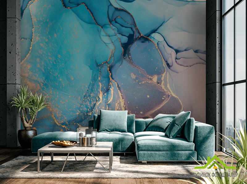 Фотошпалери синій яскравий fluid art Фотошпалери синій яскравий fluid art
