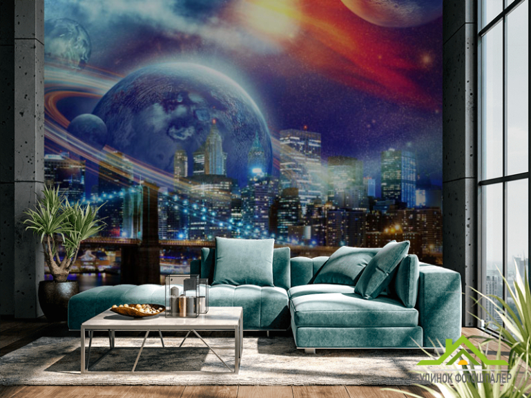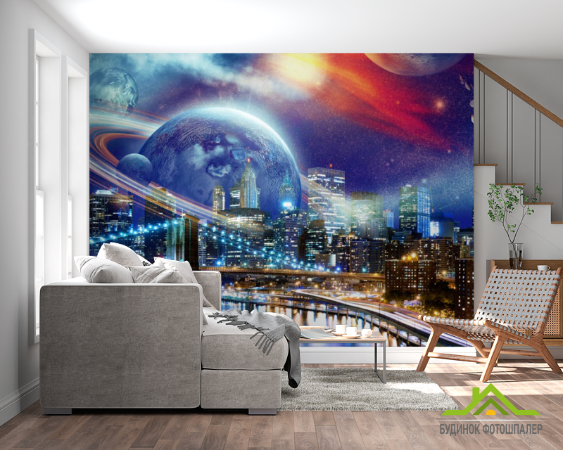 Фотошпалери місто і космос Фотошпалери місто і космос