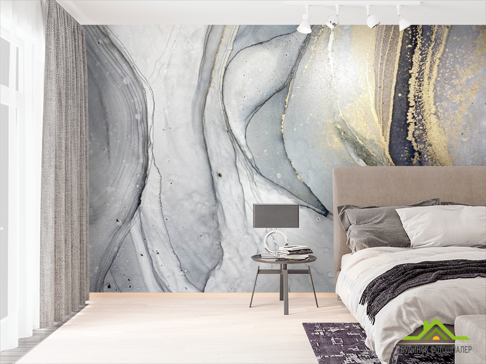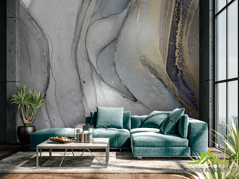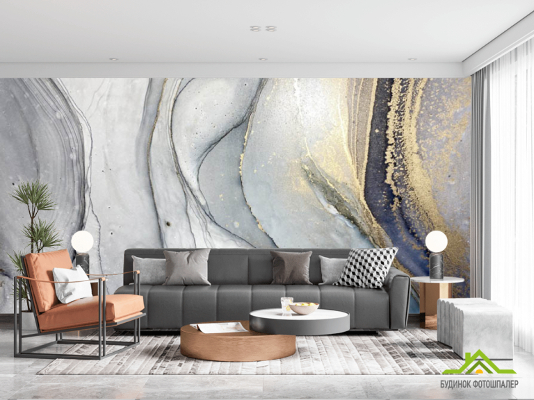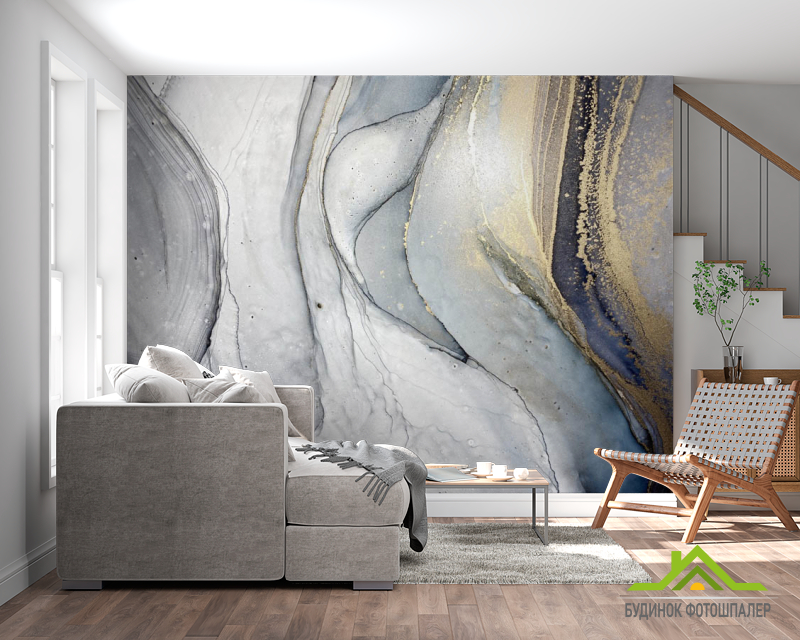 Фотошпалери Сірий fluid art з золотом