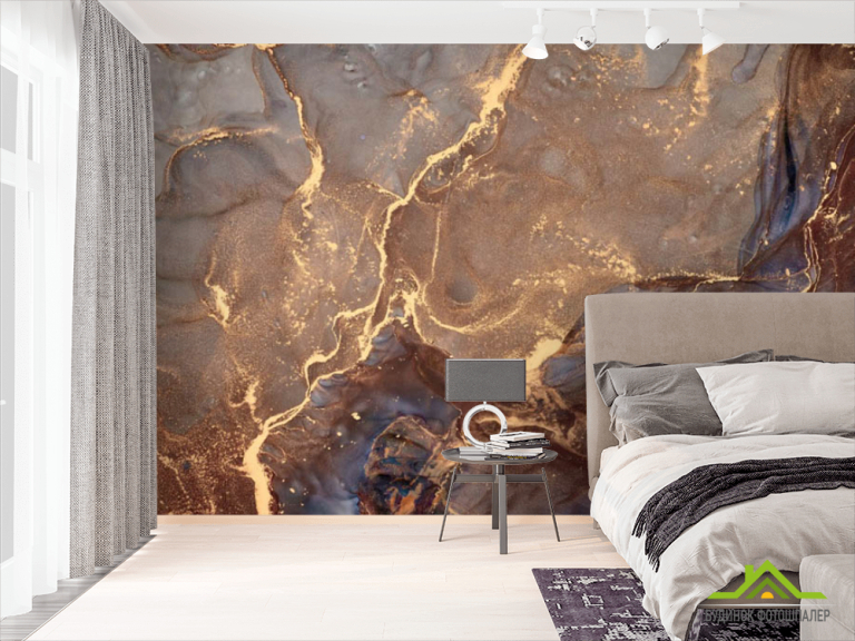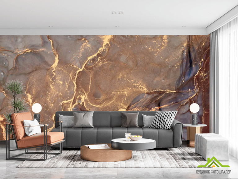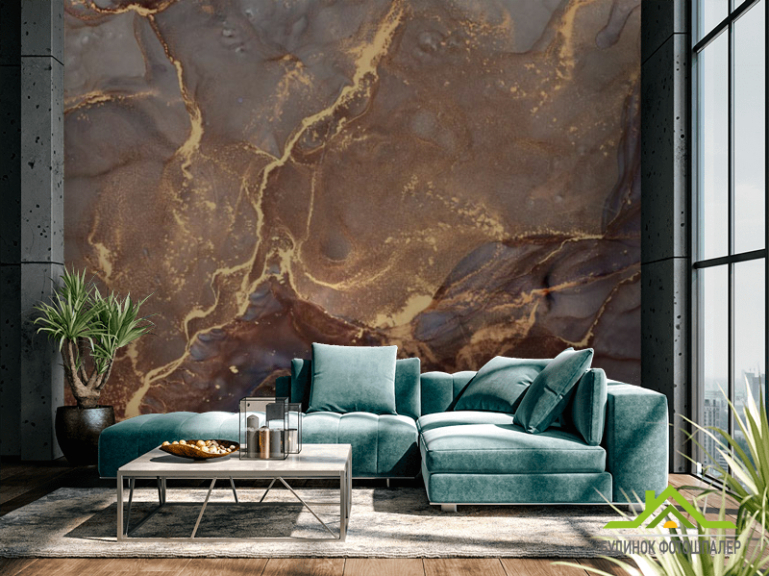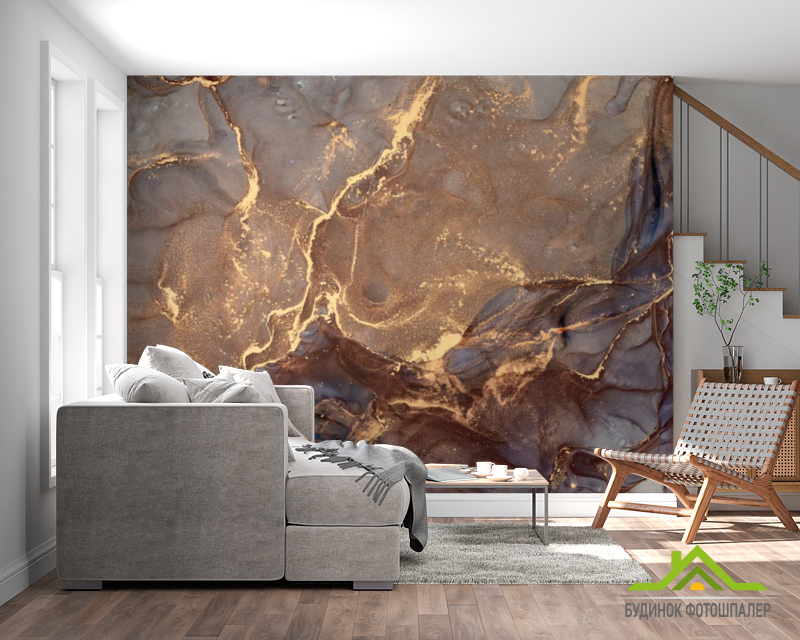 Фотошпалери Золотий fluid art з коричневим Фотошпалери Золотий fluid art з коричневим