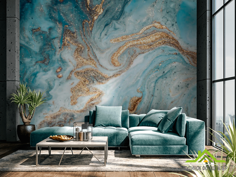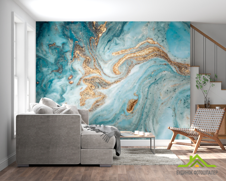 Фотошпалери Блакитний fluid art з золотом Фотошпалери Блакитний fluid art з золотом