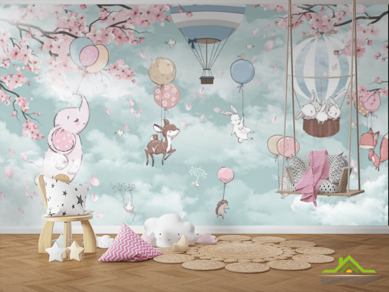 Фотошпалери звірі на повітряній кулі Фотошпалери звірі на повітряній кулі