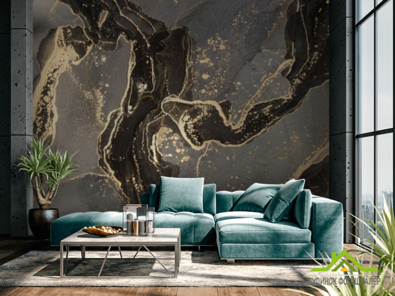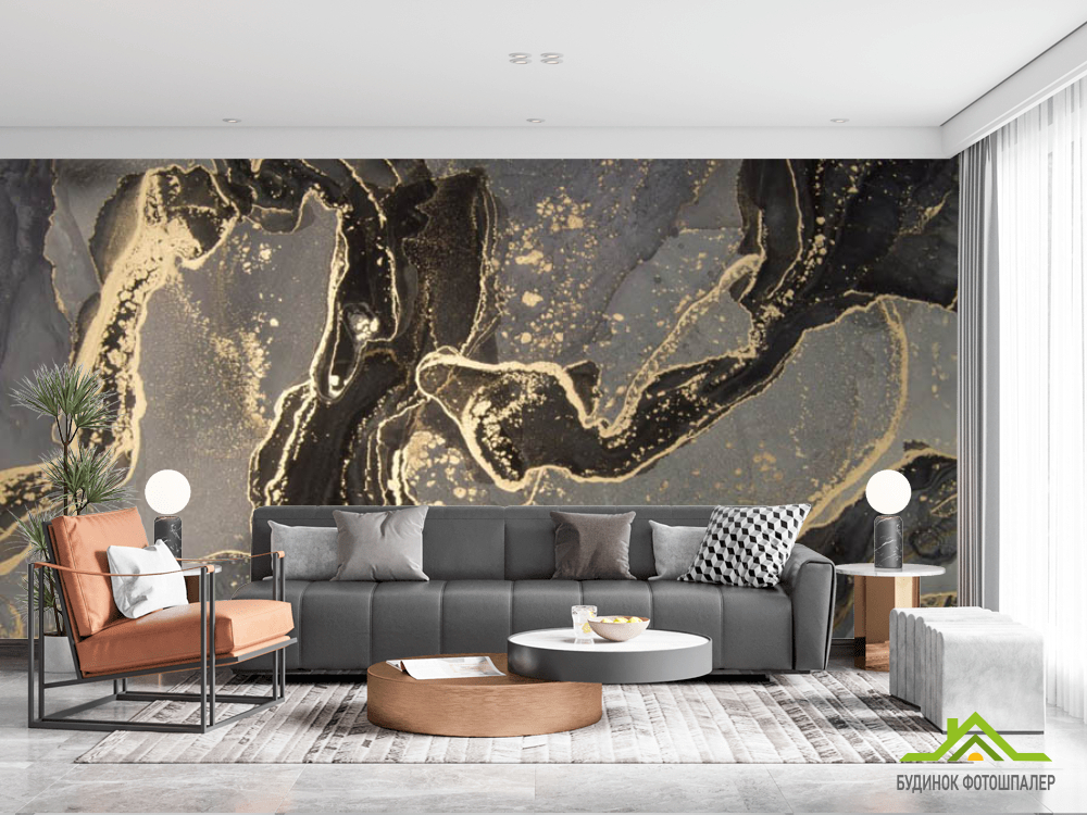 Фотошпалери Чорний fluid art з золотом Фотошпалери Чорний fluid art з золотом