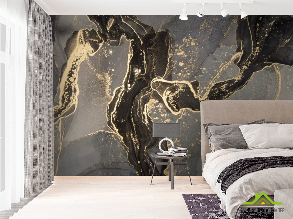 Фотошпалери Чорний fluid art з золотом