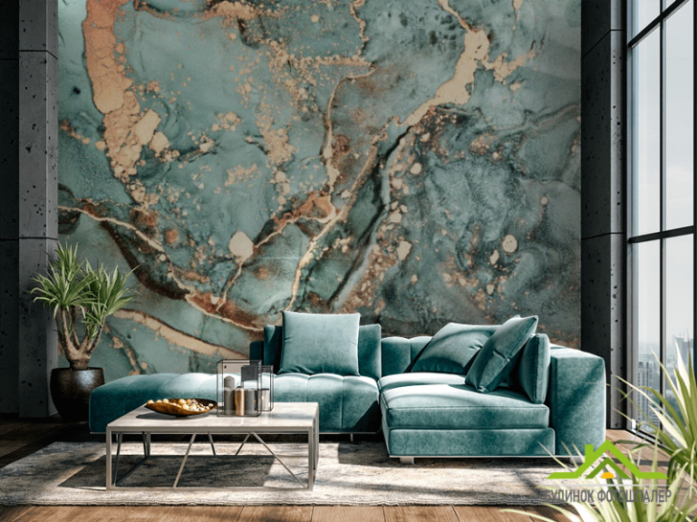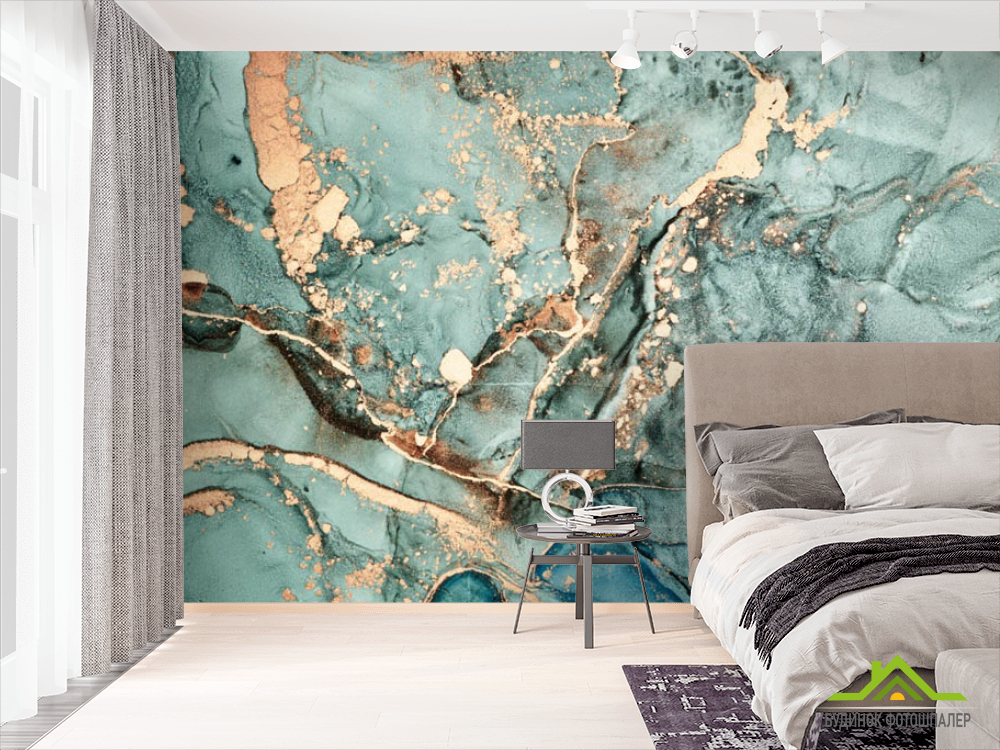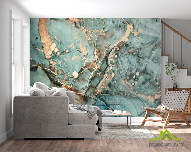 Фотошпалери Бірюзовий флюїд з золотом Фотошпалери Бірюзовий флюїд з золотом