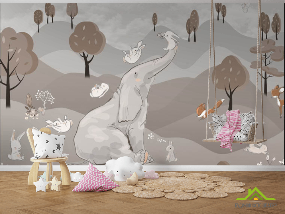 Фотошпалери Слон на галявинці Фотошпалери Слон на галявинці