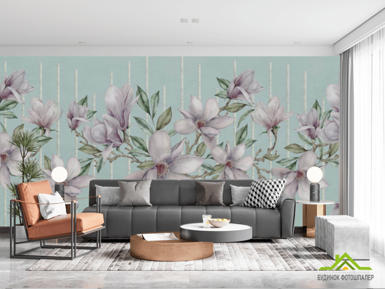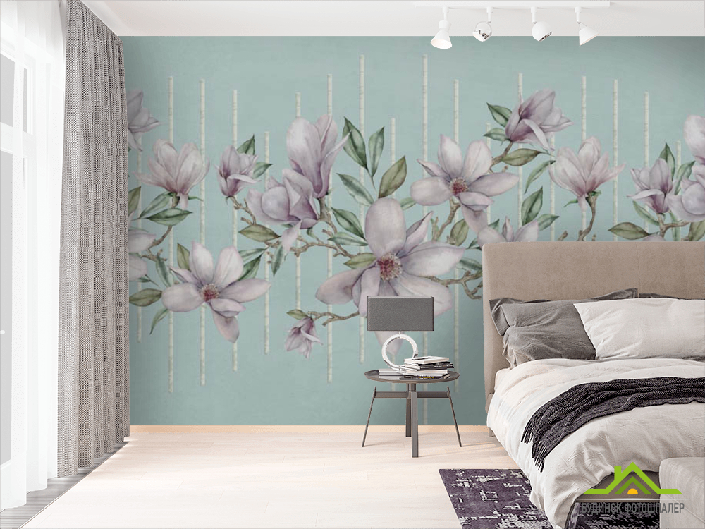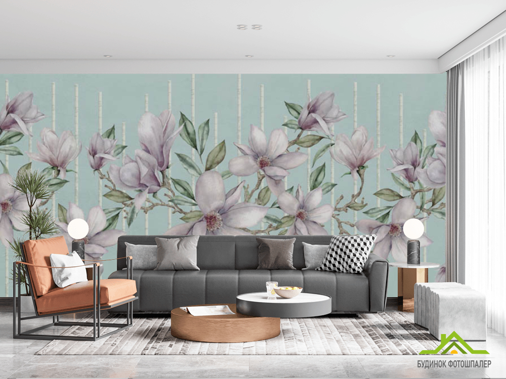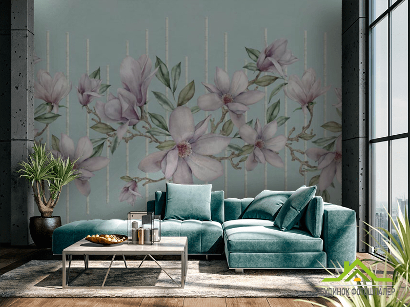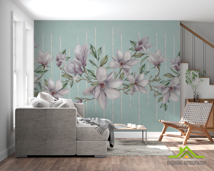 Фотошпалери магнолії на тлі бірюзи Фотошпалери магнолії на тлі бірюзи