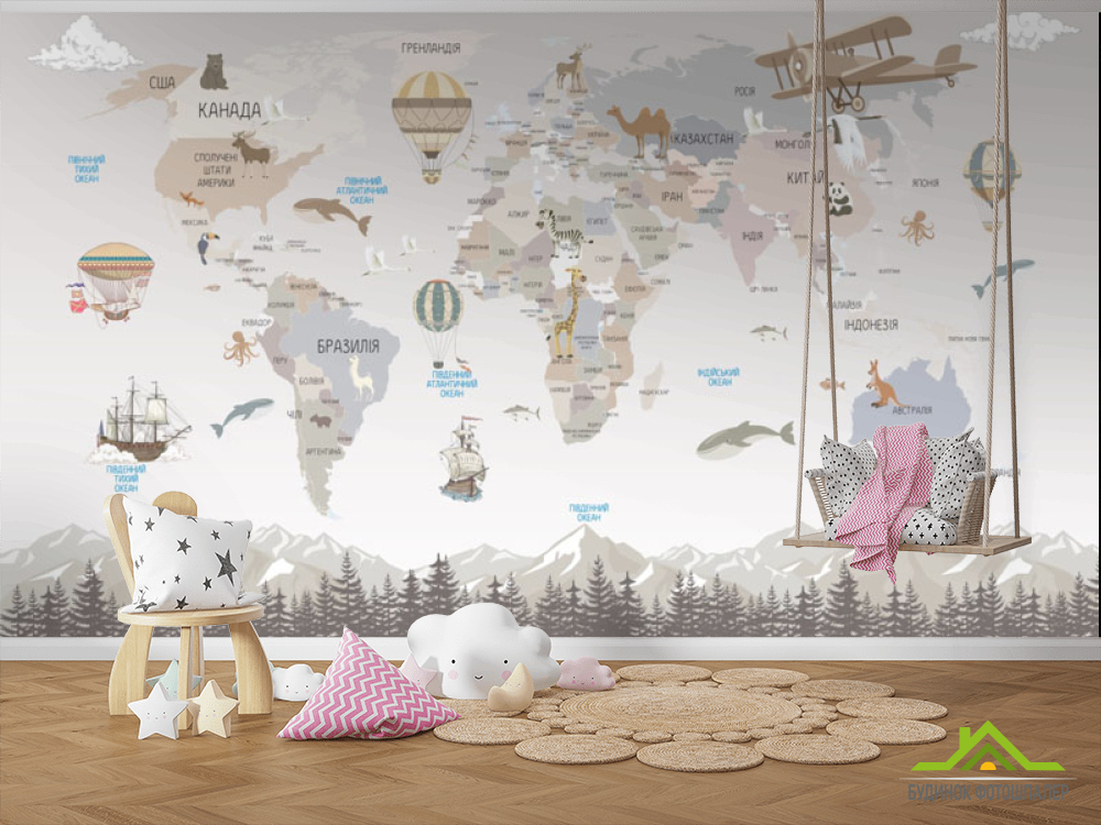 Фотошпалери дитяча карта світу Фотошпалери дитяча карта світу