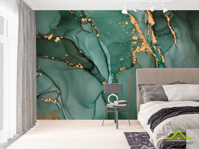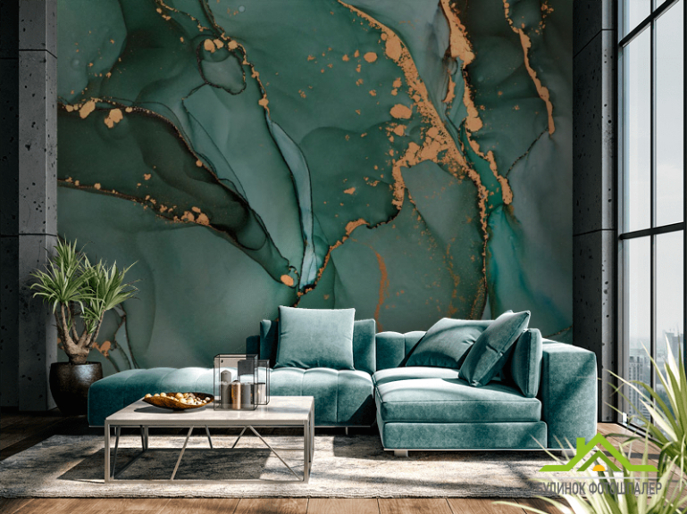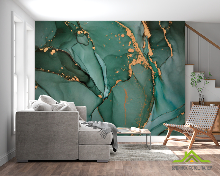Фотошпалери Бірюзовий флюїд з золотом Фотошпалери Бірюзовий флюїд з золотом