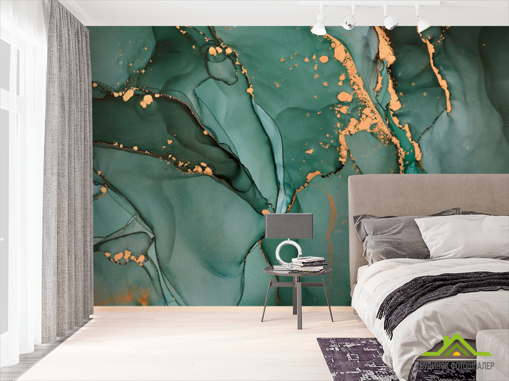 Фотошпалери Бірюзовий флюїд з золотом