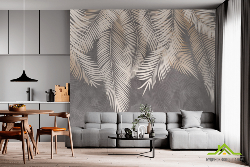 Фотошпалери сірі листя на стіну