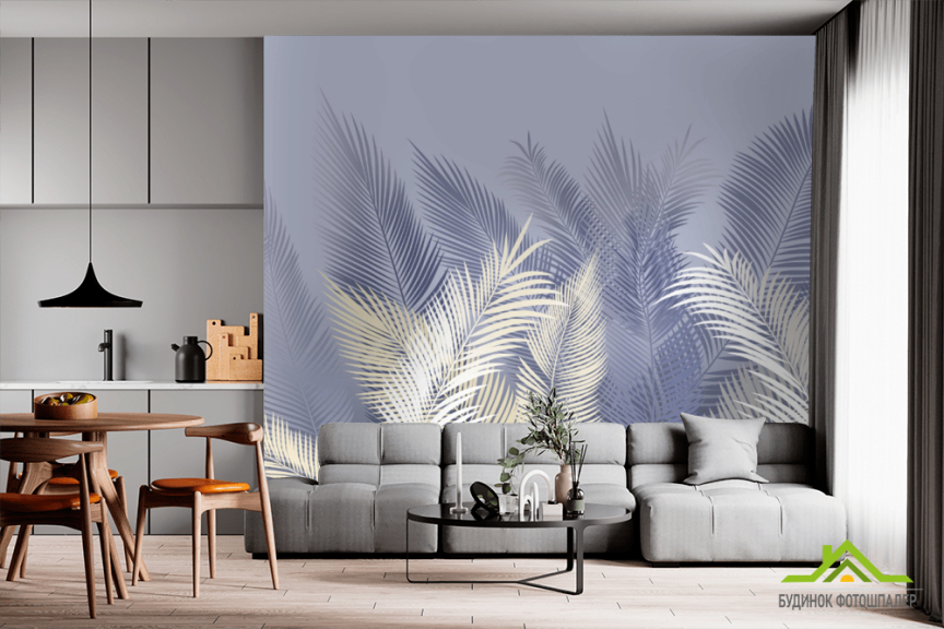 Фотошпалери сірі листя на стіну Фотошпалери сірі листя на стіну