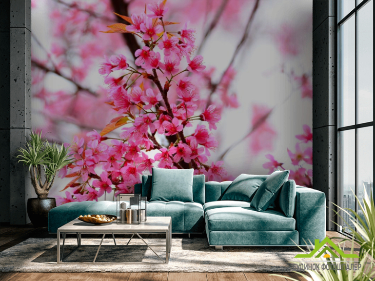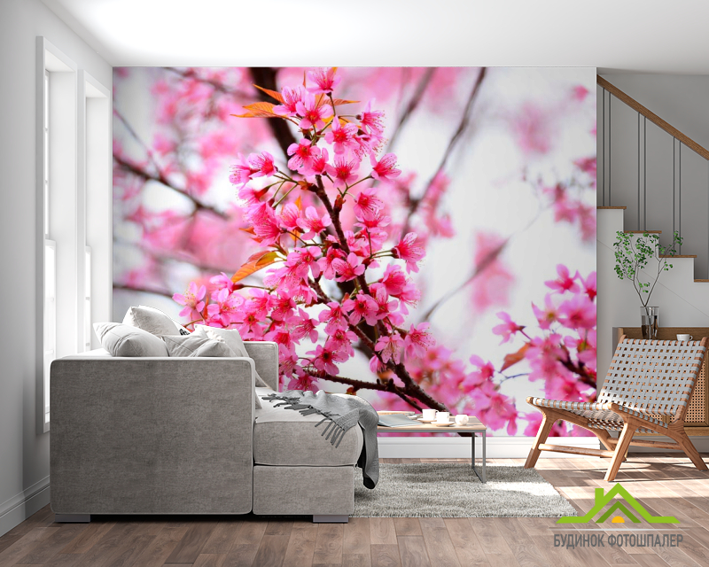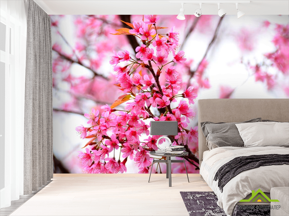 Фотошпалери Квітуче рожеве дерево Фотошпалери Квітуче рожеве дерево