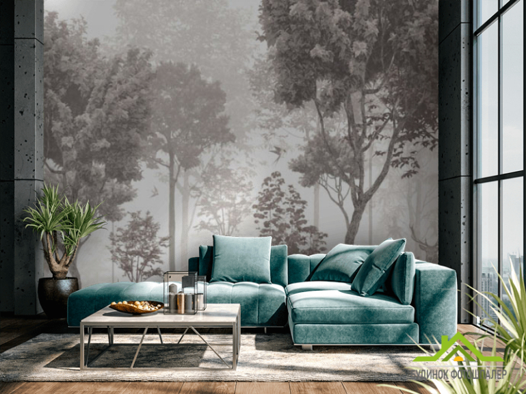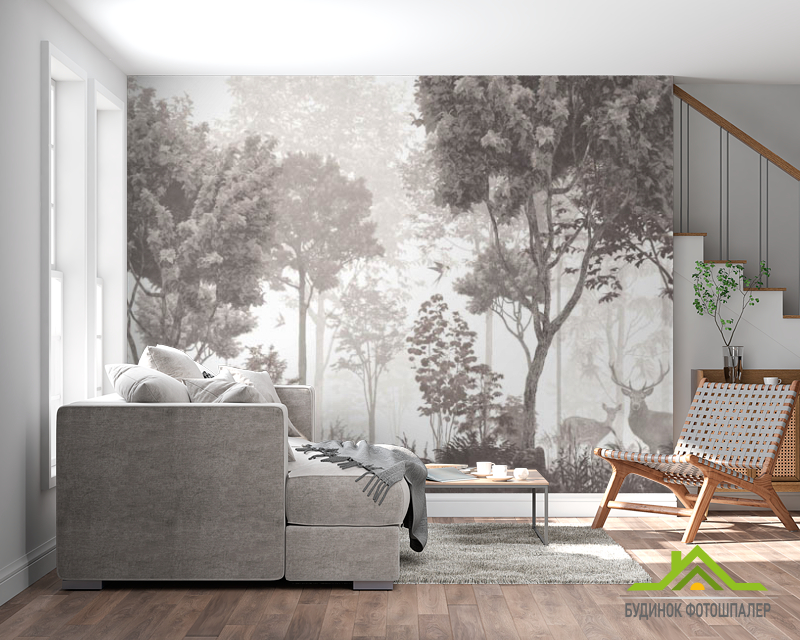 Фотошпалери Олені і дерева коричневі Фотошпалери Олені і дерева коричневі