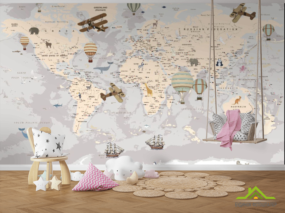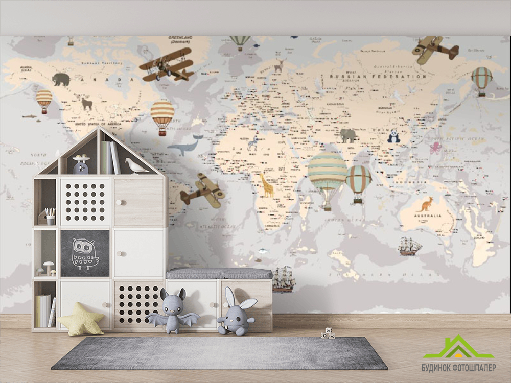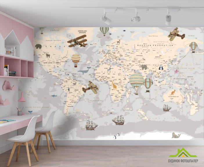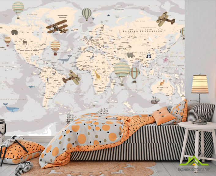 Фотошпалери Карта дитячий Англійська сірого кольору Фотошпалери Карта дитячий Англійська сірого кольору