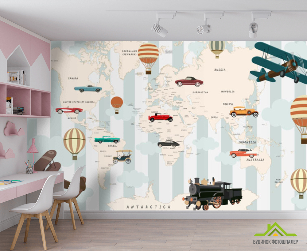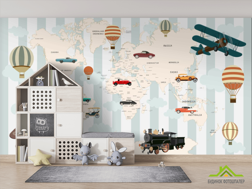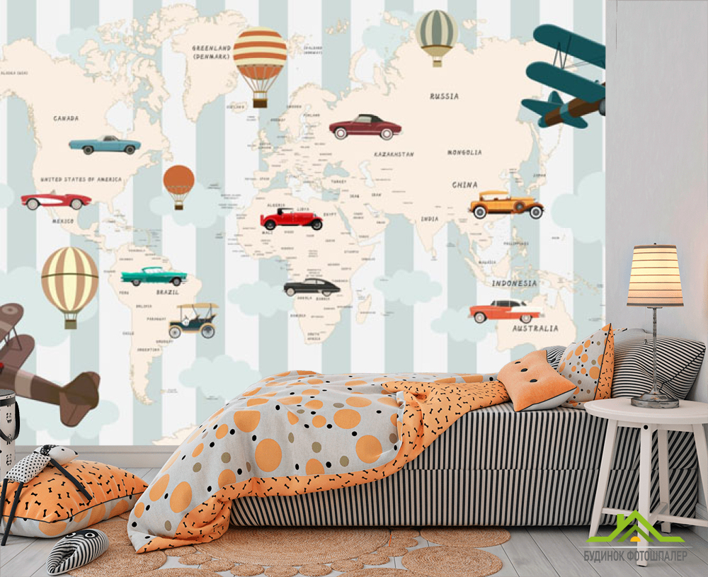 Фотошпалери Карта дитяча для хлопчика з машинами Фотошпалери Карта дитяча для хлопчика з машинами
